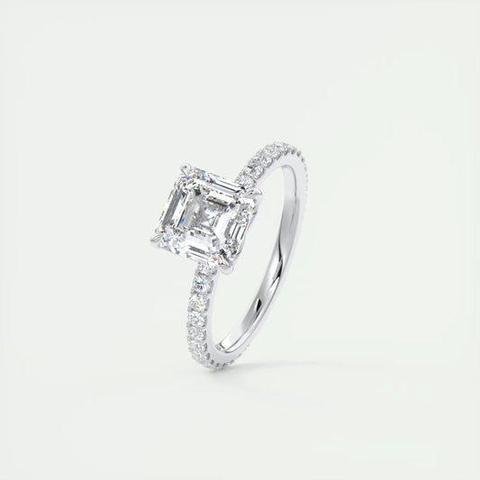 2.50 Ct Royale Pavé Asscher Floral Basket 1.8mm French Set Pavé Ring
