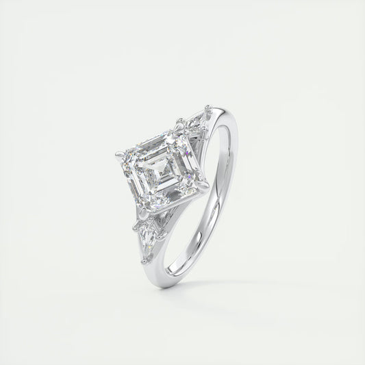 3.00 Ct The Symphony Asscher & Side Stone Kites Split Shank Three Stone Engagement Rings