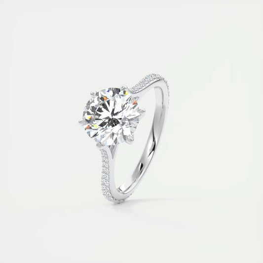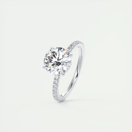 2.30 Ct Harper Pavé Round Center with 1.5mm French Set Pavé six claw prongs Rings