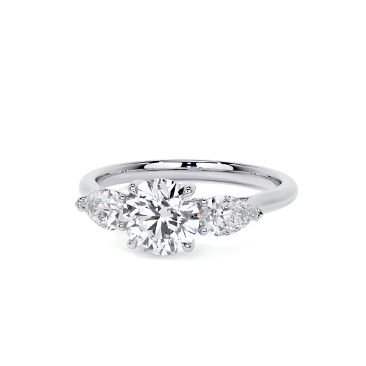 3.50 Ct In Round Bardot Scallop Three Stone Engagement Rings